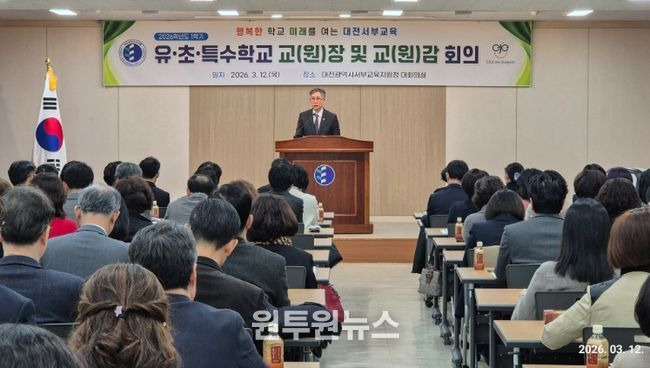 (원투원뉴스) 대전서부교육지원청은 3월 12일 대회의실에서 관내 유·초·특수학교 교(원)장 및 교(원)감을 대상으로 ‘2026학년도 1학기 유·초·특 교(원)장·교(원)감 회의’를 개최했다고 밝혔다.