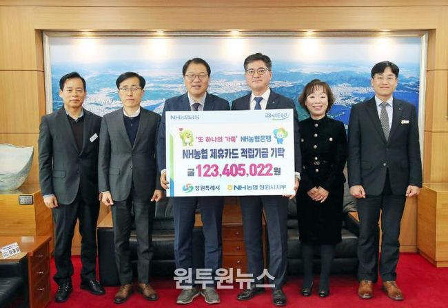 (원투원뉴스) 창원특례시는 12일 시청 접견실에서 NH농협은행 관계자들이 참석한 가운데 제휴카드 적립기금 전달식을 개최했다.