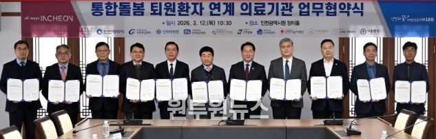 (원투원뉴스) 인천광역시는 3월 12일 시청 장미홀에서 상급종합병원 등 관내 10개 의료기관과 함께 '통합돌봄 퇴원환자 지역사회 연계 활성화를 위한 업무협약(MOU)'를 체결했다고 밝혔다,