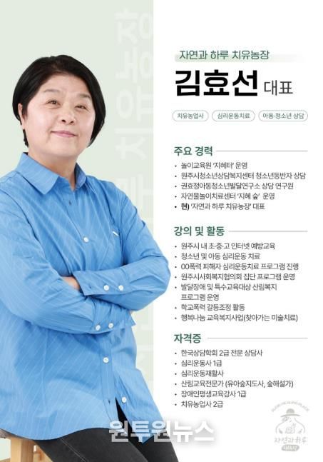 김준희 농업기술센터 소장은 “김효선 대표의 전문적인 운영 모델이 원주시 치유농업의 표준이 되길 기대한다”라고 말했다.