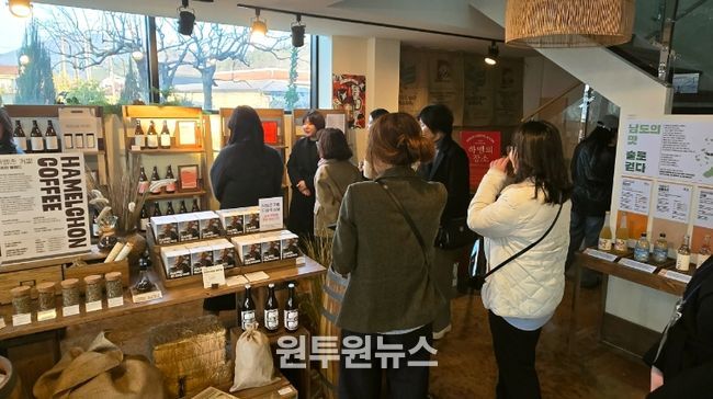 팝업스토어 공간은 방문객 동선과 체험 흐름을 고려해 ▲맥주 원료 체험 ▲ 하멜촌맥주+코리안 화이트 선물세트 구성 ▲브랜드·제품 소개(스토리) ▲맥주와 커피 시음·체험 ▲구매·상담 ▲‘남도의 맛, 술로 걷다’ 연계 콘텐츠로 구성했다.