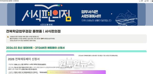 (원투원뉴스) 전북특별자치도교육청이 교사 행정업무 경감을 위해 운영하는 ‘AI 서식편의점’의 기능 및 편리성을 한층 강화한다.