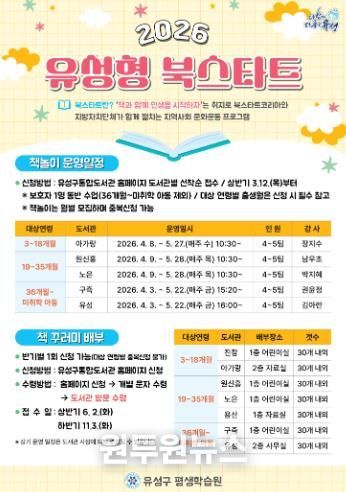 (원투원뉴스) 대전 유성구는 관내 7개 공공도서관에서 영유아의 생애 초기 독서 습관 형성과 부모와 자녀 간 정서적 교감 증진을 위한 유성형 ‘북스타트(Book Start)’를 운영한다.