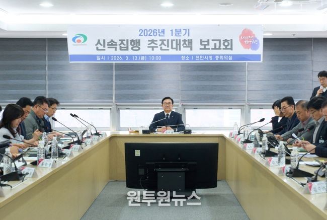 천안시는 13일 시청 중회의실에서 김석필 천안시장 권한대행 부시장 주재로 ‘2026년 1분기 신속집행 추진대책 보고회’를 열고 부서별 주요 사업 추진현황 점검 및 재정 집행률 제고 방안을 논의했다.