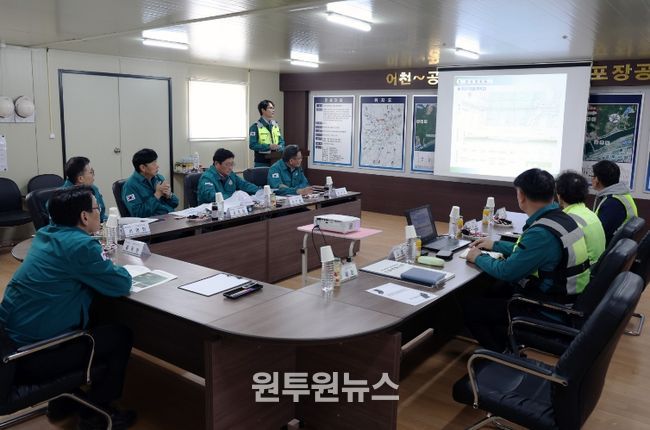 홍 부지사와 도 관계 공무원, 시공사 등 건설 현장 관계자 10여 명이 참석한 가운데, 이번 현장 점검은 공사 현황 보고, 현장 점검 등의 순으로 진행했다.