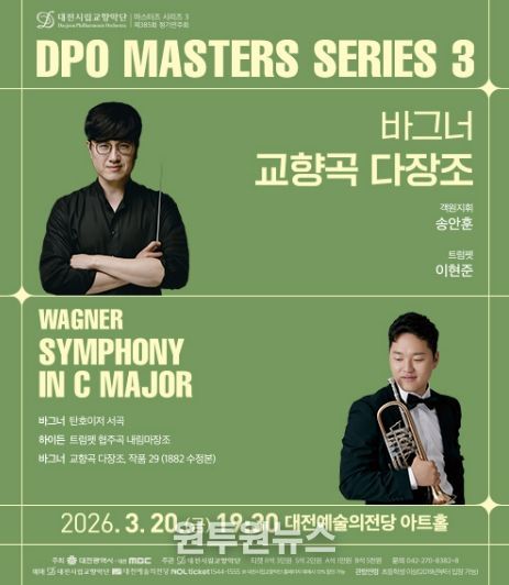 (원투원뉴스) 대전시립교향악단은 20일 오후 7시 30분, 대전예술의전당 아트홀에서 마스터즈시리즈 3‘바그너 교향곡 다장조’를 선보인다.