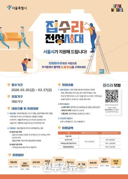 (원투원뉴스) 서울 강서구는 노후주택 거주자의 주거환경 개선을 위해 집수리 공사비 일부를 지원하는 ‘안심 집수리 보조사업’을 추진한다.