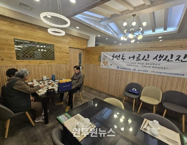 (원투원뉴스) 수원시 권선구 곡선동 지역사회보장협의체는 13일 관내 식당인 ‘이교수한정식’에서 생신을 맞은 독거 어르신 3명에게 ‘사랑의 생신상’을 대접했다.