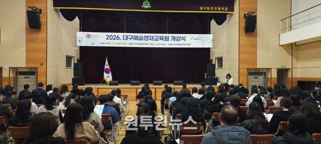 (원투원뉴스) 대구시교육청 학생문화센터는 지난 3월 14일 대구학생문화센터(구,파호초) 강당에서 음악 영재 24명, 미술 영재 24명과 학부모 및 교수진 등이 참석한 가운데 2026학년도 대구예술영재교육원 개강식을 개최했다.