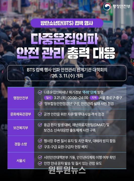 - BTS 컴백 행사 인파 안전관리 관계기관 대책회의 '26.3.11.(수) 개최