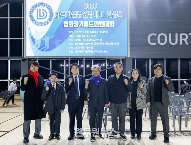 (원투원뉴스) 화성특례시의회는 14일 화성실내배드민턴장에서 열린 '2026 화성시 배드민턴협회장배 및 바르다임병원장배 배드민턴 대회' 개회식에 참석해 생활체육 활성화와 배드민턴 동호인들의 화합을 응원했다.