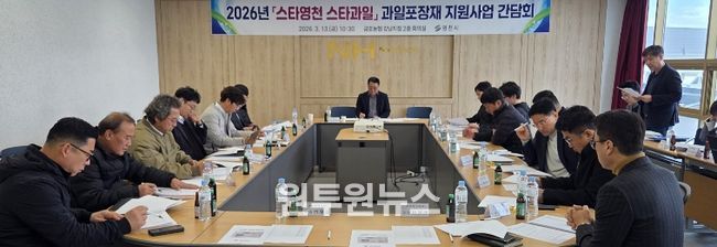 (원투원뉴스) 영천시는 지난 13일 금호농협 강남지점 회의실에서 '스타영천 스타과일' 과일포장재 지원사업 간담회를 개최했다.