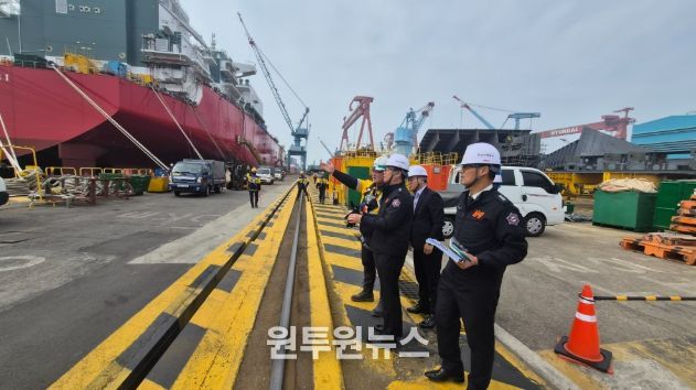 이날 최민철 본부장은 HD현대삼호 경영진과 함께 LNG 운반선 건조 현장 등 주요 제조공정을 꼼꼼히 시찰했다. 특히 용접 및 절단 등 화기 작업이 잦은 조선소의 구조적 취약점을 지적하며, ▲가연성 가스 체류 여부 상시 확인 ▲자위소방대 중심의 신속한 초기 대응 시스템 가동 등 현장 안전 수칙의 철저한 이행을 강력히 당부했다.