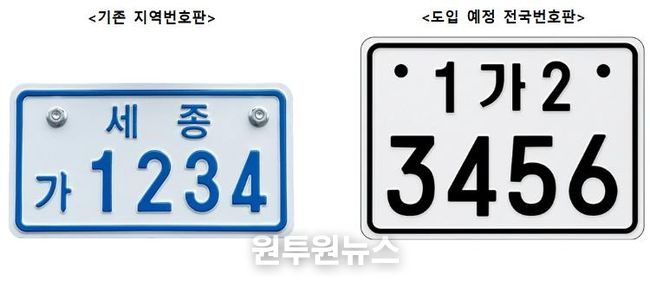 (원투원뉴스) 세종특별자치시가 오는 20일부터 국토교통부 등록번호판 기준 고시 개정에 따라 이륜자동차 전국번호판을 전면 도입한다.