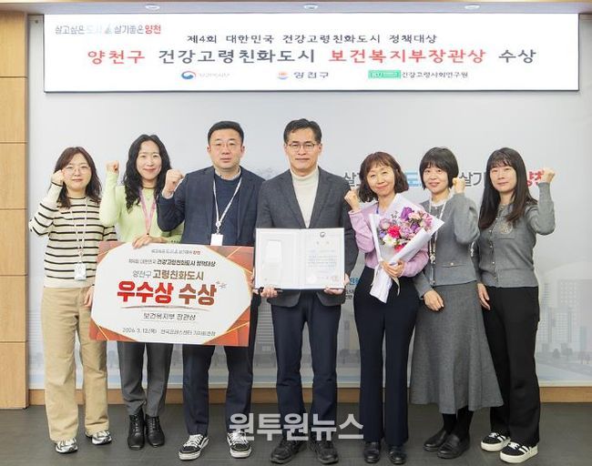 (원투원뉴스) 양천구가 보건복지부가 후원하고 건국대학교 건강고령사회연구원이 주최한 ‘제4회 대한민국 건강고령친화도시 정책대상’에서 보건복지부장관상을 수상하며, 전국 상위 6개 우수기관에 이름을 올렸다.