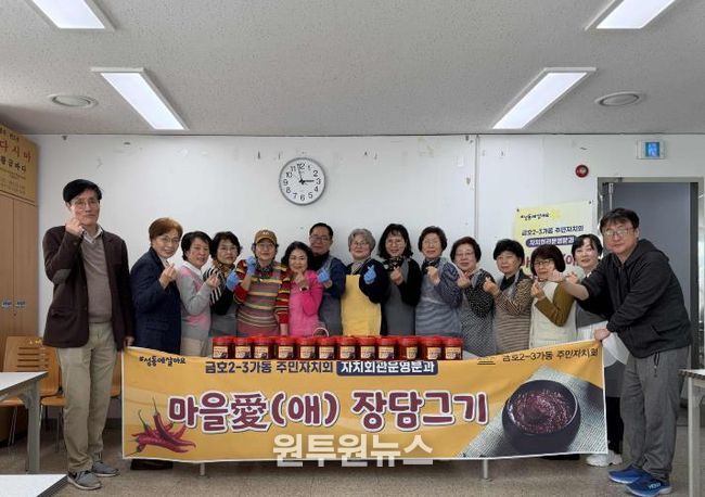 (원투원뉴스) 서울 성동구 금호2-3가동 주민자치회 자치회관운영분과는 지역 주민들과 함께하는 발효식품 만들기 체험으로 ‘마을애(愛) 장담그기’행사를 지난 3월 11일 진행했다.