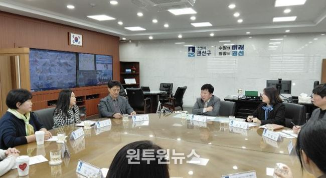 (원투원뉴스) 수원시 권선구는 16일 ‘손바닥정원단(권선분과)’과 간담회를 열고, 시민 참여형 정원 문화 확산과 효율적인 유지관리 방안을 논의했다.
