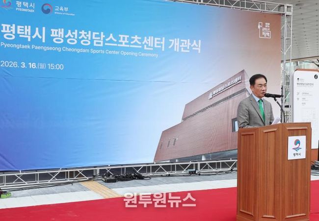 정장선 평택시장은 기념사를 통해 “평택시 팽성 청담 스포츠센터는 학교 유휴 부지를 활용해 교육 환경을 개선하고 지역 주민의 복지를 증진한 상생의 사례”라며, “앞으로도 학생들이 안전한 환경에서 학습하고, 시민들이 일상 속 편의를 누릴 수 있는 내실 있는 교육 기반 시설 조성에 힘쓰겠다”라고 밝혔다.