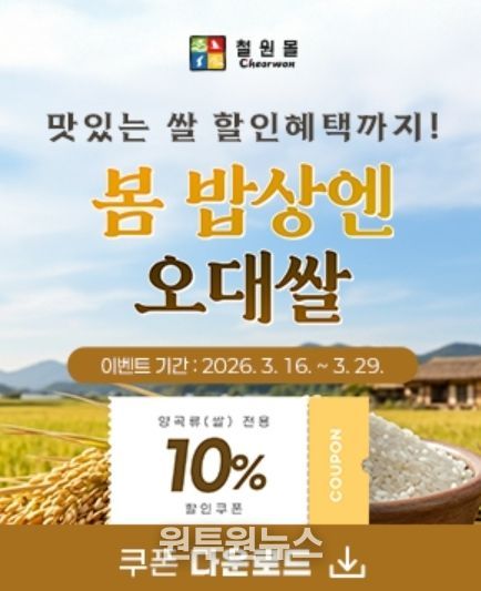 이번 기획전은 3월 29일까지 2주간 진행되며, 철원몰에 입점한 다양한 지역 농·특산물을 보다 합리적인 가격에 구매할 수 있도록 할인 혜택을 제공한다.