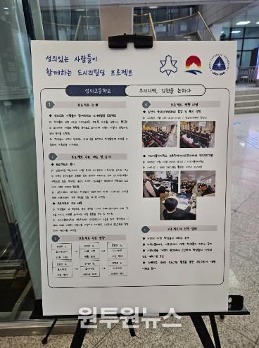이번 프로젝트는 김천시 도시재생사업을 연구하고, 학생들이 직접 구상한 도시재생 아이디어를 결과물로 만들어 내는 지역 봉사 프로그램으로, 성의고등학교 1학년 학생 112명이 20개 팀을 구성해 약 6개월 동안 참여했다.