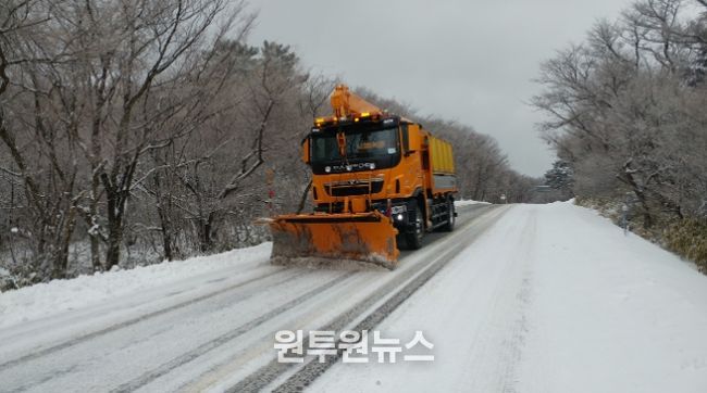(원투원뉴스) 제주특별자치도는 지난해 11월부터 올해 3월 중순까지 동절기 제설대책을 추진한 결과, 총 38일간 제설작업을 실시하며 도로 통행 안전 확보에 총력을 기울였다.