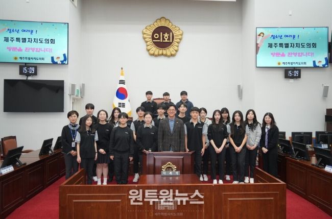(원투원뉴스) 제주특별자치도의회는 3월 17일 오후 3시, 본회의장에서 탐라중학교 학생자치회 학생들과 함께 청소년의회 의정체험을 추진했다.