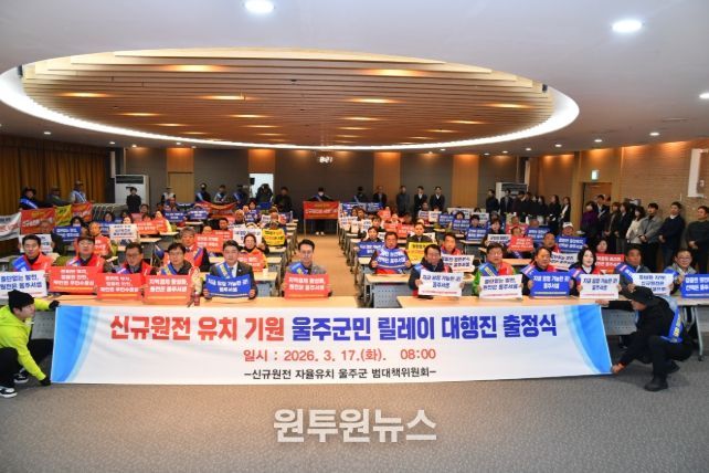이날 이순걸 군수와 서범수 국회의원, 울주군의회 최길영 의장 및 시군의원, 범대책위원회, 주민 등 70여명은 군청 문수홀에서 출정식을 개최한 뒤 릴레이 행진에 나섰다.