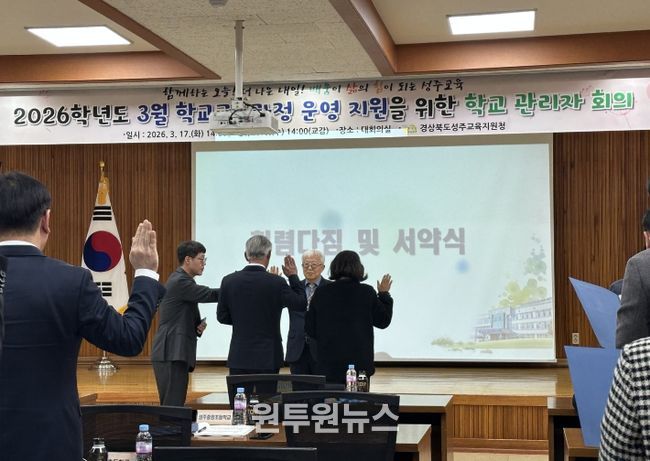 (원투원뉴스) 경상북도성주교육지원청은 2026년 3월 17일 관내 초·중·고등학교장을 대상으로 '학교장 청렴 다짐식'을 개최했다.