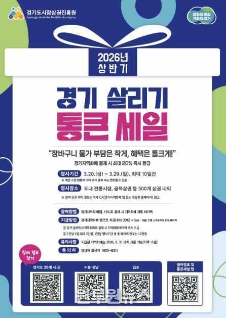 (원투원뉴스) 부천시는 관내 전통시장과 골목상권 등 39개 상권에서 3월 20일부터 29일까지 ‘2026년 상반기 경기 살리기 통큰 세일’이 열린다고 18일 밝혔다.