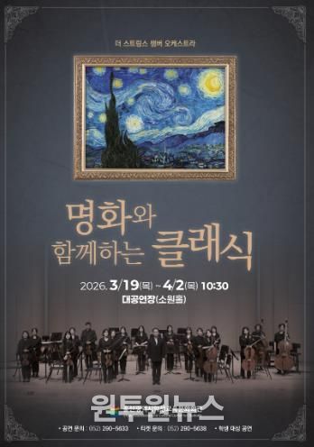 (원투원뉴스) 울산학생교육문화회관은 오는 19일부터 4월 2일까지 대공연장에서 울산 지역 학생 단체를 대상으로 ‘명화와 함께하는 클래식’ 공연을 운영한다.