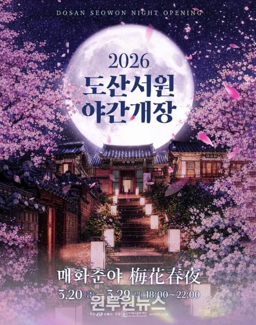 이번 야간개장은 퇴계 이황 선생이 생전에 ‘매형(梅兄)’이라 부르며 아꼈던 매화가 만개하는 시기에 맞춰 기획됐다. ‘매화춘야(梅花春夜)’를 주제로, 낮과는 또 다른 매력을 지닌 서원의 야경과 은은한 매화 향이 어우러진 특별한 봄밤을 선사할 예정이다.