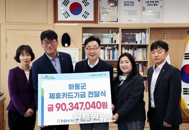 (원투원뉴스) 하동군은 지난 17일 NH농협은행 하동군지부(지부장 장주익)로부터 제휴카드 사용에 따른 적립 기금 9035만 원을 전달받았다고 밝혔다.