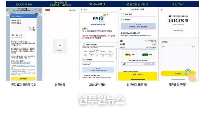 (원투원뉴스) 파주시는 지방세 체납액 징수율을 제고하기 위해 도입한 '체납 안내 카카오 알림톡 모바일 전자고지 서비스'가 뚜렷한 성과를 거두고 있다.