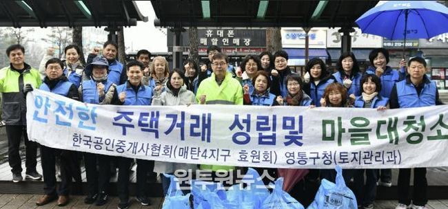 (원투원뉴스) 수원시 영통구는 지난 18일, 매탄동 소재 공인중개사 봉사단체 효원회가 영통구청 인근의 주택가와 상가 지역을 중심으로 환경정화 활동을 실시했다고 밝혔다.