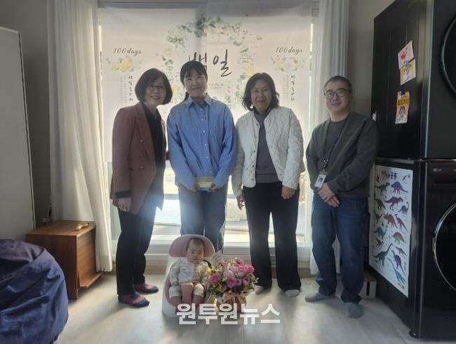(원투원뉴스) 미산면지역사회보장협의체는 지난 17일 관내 백일(百日)이 된 아동의 건강한 성장을 위해 ‘출생아동 백일기념 축하 사업’을 실시하여 아이의 건강한 성장과 가정의 행복을 기원했다.