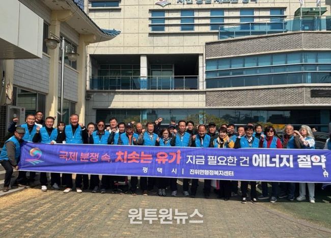 (원투원뉴스) 평택시 진위면 이장협의회가 지난 17일 중동지역 정세 불안에 따른 위기 대응과 지역사회 에너지 절약 문화 확산을 위해 ‘우리 마을 에너지 지킴이 운동’을 전개했다.