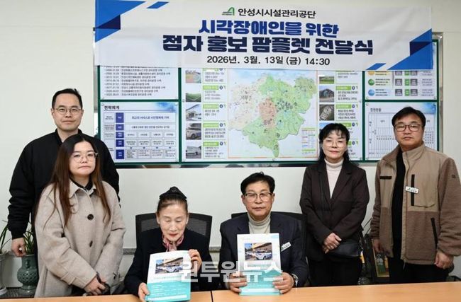 (원투원뉴스) 안성시시설관리공단은 지난 13일 안성시 시각장애인협회에 시각장애인의 교통정보 접근성 향상을 위한 점자 홍보물(팜플렛)을 전달했다.