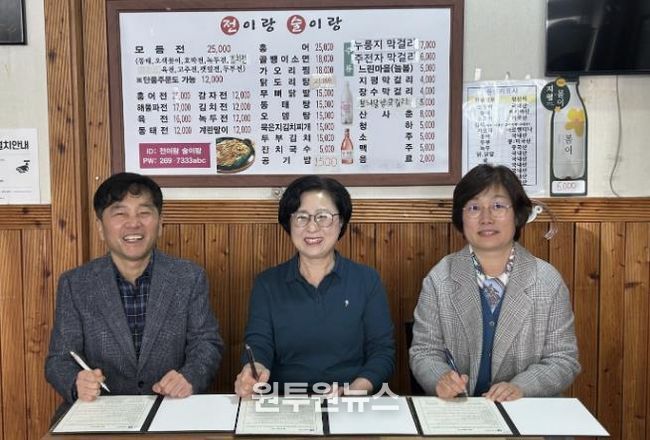 (원투원뉴스) 수원시 장안구 정자3동은 지난 17일, 정자3동 지역사회보장협의체와 함께 지역 음식점 ‘전이랑술이랑’과 취약계층 어르신의 복지 향상 및 지역사회 상호 협력체계 구축을 위한 업무협약(MOU)을 체결했다.
