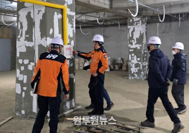 주요 내용으로는 ▲공사장 관계자 면담을 통한 화재예방 교육 ▲용접·용단 작업 시 불티 관리 등 화재위험요인 점검 ▲위험물 저장·취급기준 준수 여부 확인 등이 이뤄졌다. 또한 ▲가연성 물질 분리 및 화재감시체계 운영 지도 ▲임시소방시설 및 밀폐구역 등 위험지역 점검 ▲외국인 근로자 대상 안전교육 ▲해빙기 지반침하 등 안전사고 예방 지도도 함께 진행됐다.