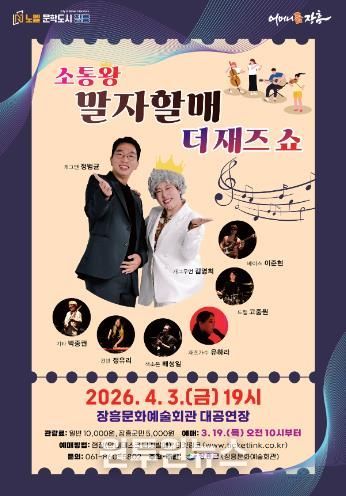 (원투원뉴스) 장흥군은 오는 4월 3일 저녁 7시 장흥문화예술회관 대공연장에서 ‘소통왕 말자 할매 더 재즈 SHOW’ 토크 콘서트를 개최한다고 전했다.