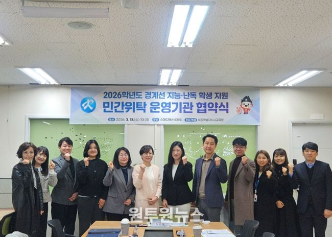 (원투원뉴스) 세종특별자치시교육청은 3월 18일 스마트허브1 학습지원센터에서 ‘2026학년도 경계선 지능 및 난독 학생 민간위탁 운영기관 협약식’을 개최했다.