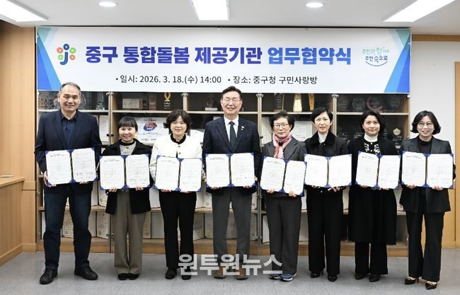 (원투원뉴스) 대전 중구는 18일 통합돌봄 일상생활지원 서비스 제공기관 7개소와 ‘2026년 중구 통합돌봄사업 서비스 제공’을 위한 업무협약을 체결했다고 밝혔다.