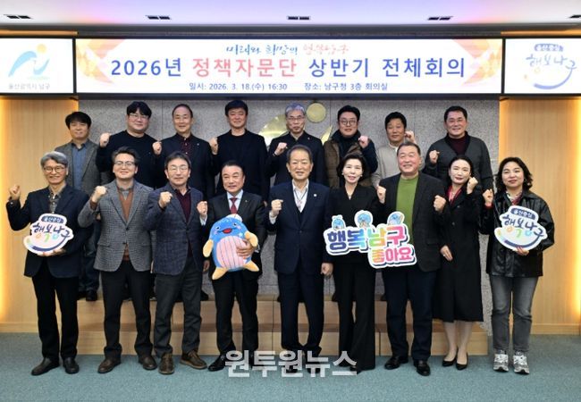 (원투원뉴스) 울산 남구는 18일 남구청 3층 회의실에서 정책자문위원과 관계 공무원 등 30여 명이 참석한 가운데 ‘2026년 상반기 정책자문단 전체회의’를 개최했다.