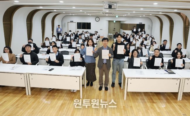 (원투원뉴스) 꿈이 모이는 도시, 미래를 그리는 강남구가 3월 18일 구청에서 전 부서 및 동 대표 직원 등 74명과 함께 ‘생활폐기물 다이어트 서약식’을 열고 생활쓰레기 감축 실천 의지를 다졌다. 앞서 16일에는 구청장을 비롯한 간부 80명이 확대간부회의에서 실천서약 챌린지에 참여한 바 있으며, 이날 서약식은 이를 전 부서와 전 동으로 넓히는 자리로 마련됐다.