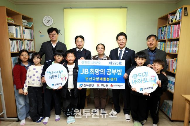 (원투원뉴스) 부안군은 JB금융그룹 전북은행(박춘원 은행장) ‘JB 희망의 공부방’ 제225호가 변산다함께돌봄센터에 오픈했다고 밝혔다.