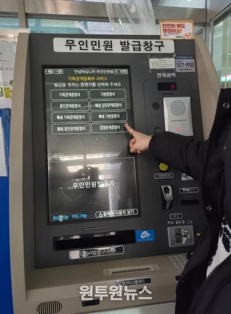 (원투원뉴스) 서울 강북구는 주민들이 보다 편리하게 민원서류를 발급받을 수 있도록 관내 무인민원발급기 4개소에 가족관계등록사항별증명서 발급 서비스를 추가했다고 밝혔다.