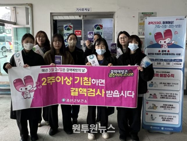 (원투원뉴스) 충북 괴산군보건소는 지난 18일“제16회 결핵 예방의 날(3. 24.)”을 맞아 괴산 시내버스 터미널에서 지역 주민을 대상으로 결핵 예방 캠페인을 실시했다.