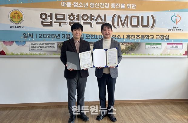 (원투원뉴스) 군포시정신건강복지센터는 12일 흥진초등학교와 아동·청소년의 정신건강증진을 위한 업무협약(MOU)를 체결했다고 밝혔다.