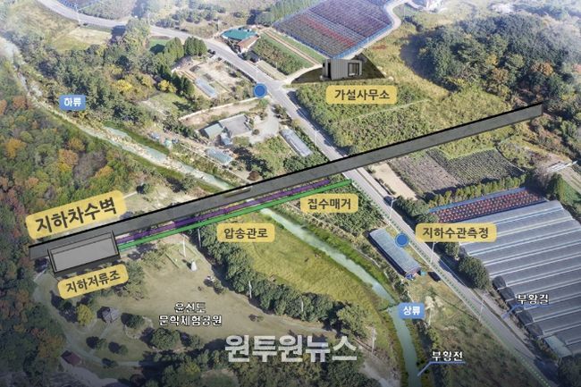 보길도 지하수 저류 댐은 지난 2023년도에 설치됐으며 지표면 아래에 차수 벽을 설치하여 지하 수위를 상승시킴으로써 가뭄에도 지하수를 확보할 수 있는 시설이다.