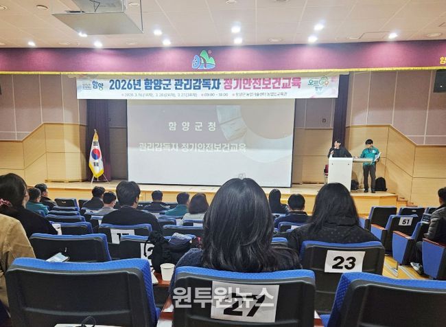 (원투원뉴스) 함양군은 소속 종사자의 산업재해 예방과 안전문화 확산을 위해 관리감독자 등 155명을 대상으로 ‘관리감독자 안전보건교육’을 실시한다고 밝혔다.